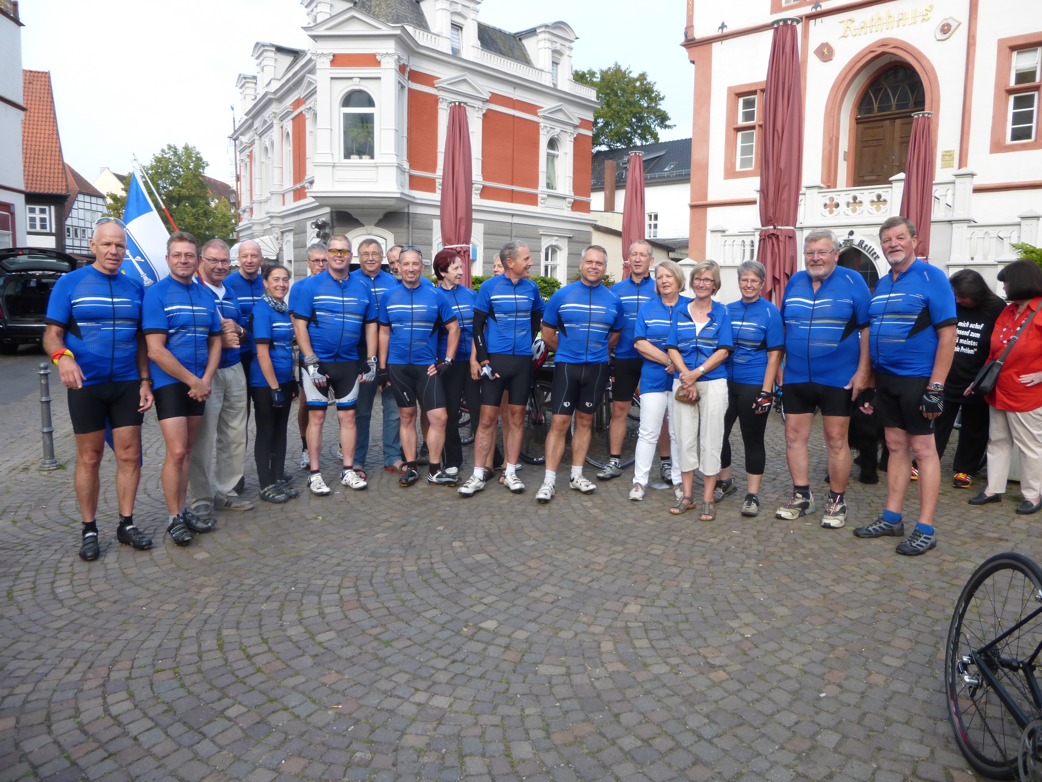 Familien, Freunde und Vertreter der Stadt, des Stadtsportverbandes, der Stadtwerke, der Presse, des Arbeitskreises Patenschft Millau und natürlich auch unseres Vereins verabschiedeten die Truppe heute morgen am Historischen Rathaus Bad Salzuflen.